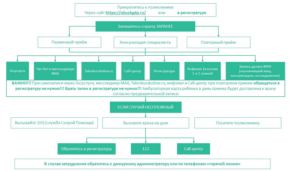 Обращаем Ваше внимание, что запись на прием к врачу производится по адресу https://www.gosuslugi.ru и с помощью регионального сервиса https://www.talon.kurskzdrav.ru